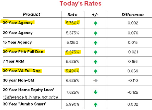 The BASE RATES (before addons for LTV, DTI, and FICO) continue to creep downward over the last month and are holding steady and are the best we’ve since before the 10/7/2024 Jobs Report for September 2024 when our last base rate was 5.25% (Note: LTV = Loan To Value, DTI = Debt To Income, FICO aka Credit Score).